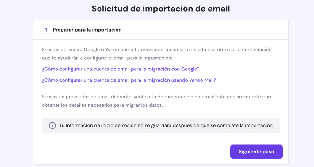 Si prefieres administrar tú las importaciones, sigue estos pasos. En este ejemplo, utilizaremos el correo de Hostinger, pero los pasos deberían ser similares a los de cualquier otro proveedor.