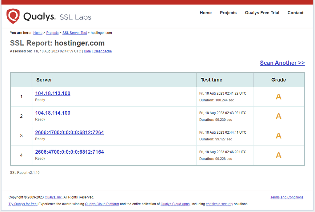 Comprueba esta posibilidad ejecutando el nombre de dominio de tu sitio web a través de un comprobador de SSL como Qualys.