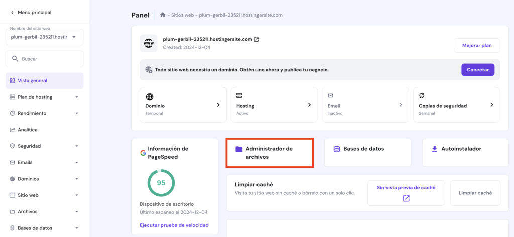 Administrador de archivos de Hostinger: