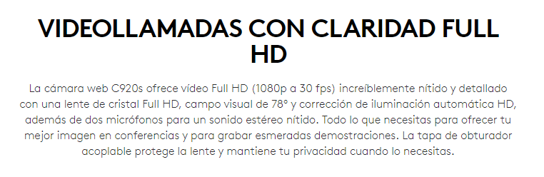 Mira un ejemplo de descripción de un producto de cámara web de Logitech.