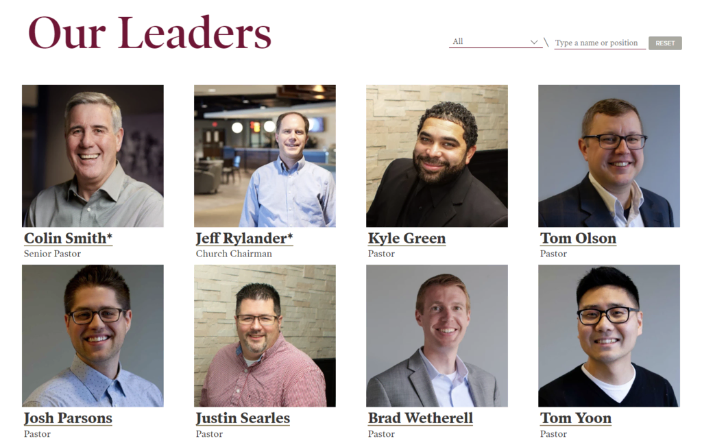 - Lista de líderes de la iglesia: mostrar a los líderes en el sitio web de una iglesia mejora la transparencia y fomenta la participación de la comunidad.