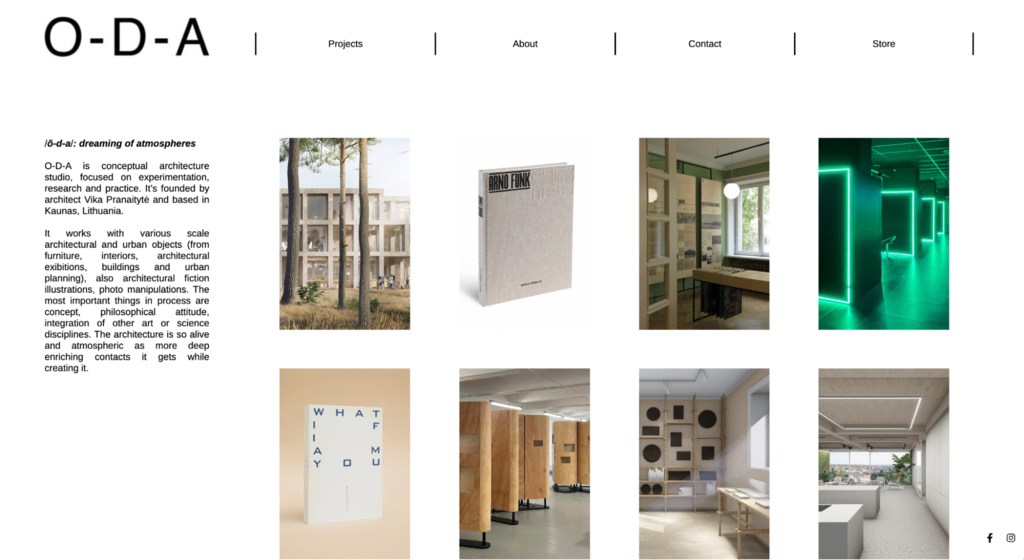 Si trabajas en un sector visual, un diseño minimalista con mucho espacio en blanco es una forma estupenda de asegurarte de que los visitantes del sitio web se centran en lo más importante.