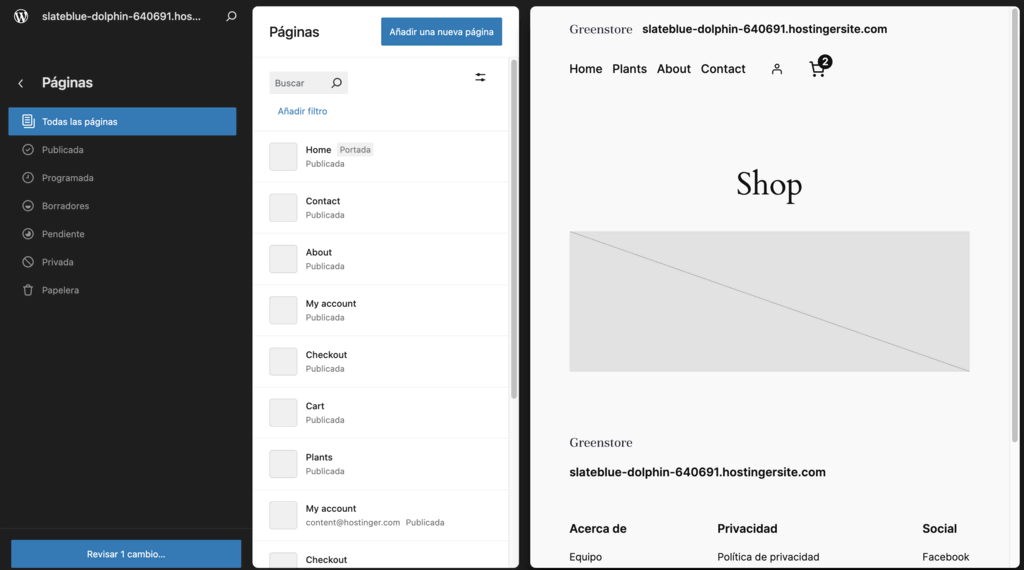 El Creador de páginas web de Hostinger es una de las mejores alternativas a WooCommerce por su facilidad de uso.