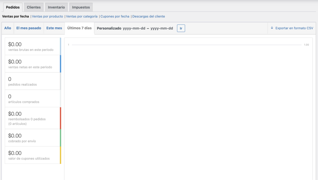 Éstas son algunas de las principales métricas seguidas por WooCommerce Analytics: