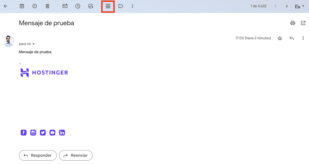 - Si necesitas mover un correo electrónico de nuevo a la bandeja de entrada, abre el correo bajo esta etiqueta y haz clic en Mover a Recibidos.