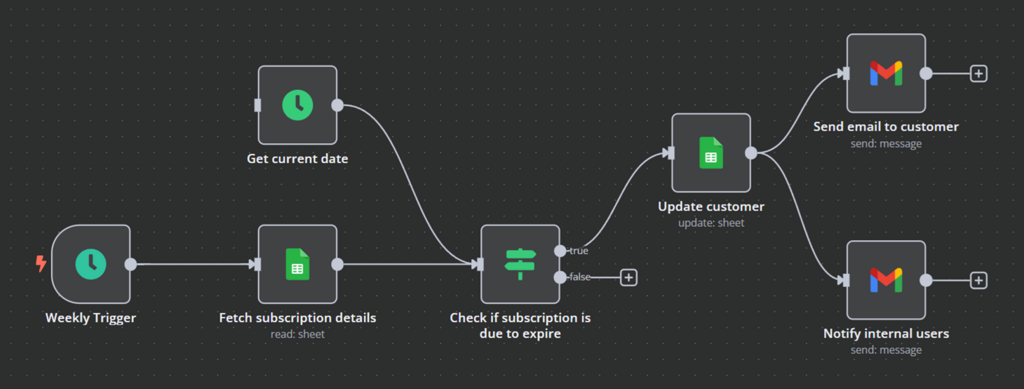 Aquí tienes un ejemplo de workflow para el seguimiento de las fechas de renovación de las suscripciones y los recordatorios: