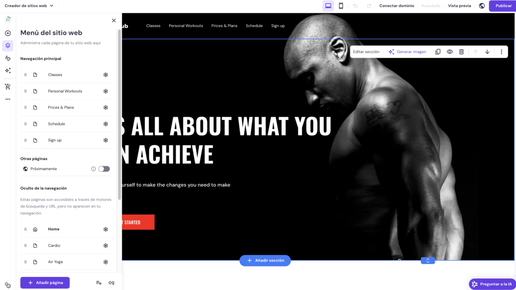 - Una vez que hayas configurado todas las páginas, haz clic en Publicar para que tu sitio web esté activo con el nuevo contenido.