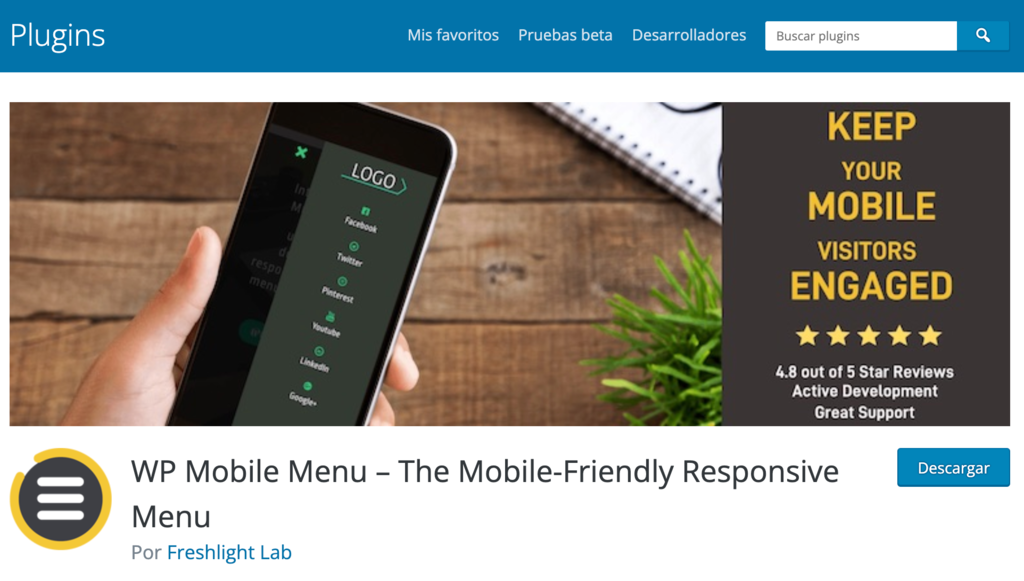 Para aquellos que desean optimizar el menú del sitio web para dispositivos móviles, WP Mobile Menu Plugin es la mejor solución. Este plugin ofrece un menú rápido, sencillo y receptivo diseñado específicamente para mejorar la experiencia de tu sitio en dispositivos móviles.