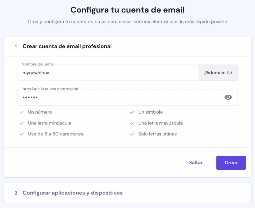 Utilizar un servicio de correo electrónico ofrecido por los proveedores de alojamiento web puede simplificar los pasos. Con el servicio de correo electrónico de Hostinger, basta con configurar un correo electrónico de Hostinger, y éste añadirá automáticamente los registros DKIM.