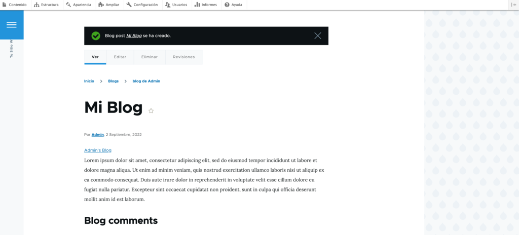 Después de instalar con éxito Drupal, podemos seguir los pasos para construir un sitio en la plataforma. La siguiente sección tratará sobre la navegación del panel de administración de Drupal y sobre cómo crear elementos del sitio web, como páginas y menús.
