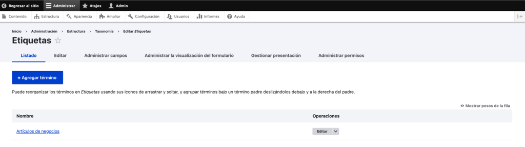 El primer paso para crear una taxonomía es añadir los vocabularios necesarios y cada uno de sus términos. A continuación, puedes adjuntar los términos de la taxonomía a las entidades de contenido, estableciendo páginas de listado para clasificarlas.