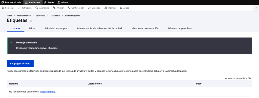 Crear una taxonomía es fácil. Puedes hacerlo siguiendo estos pasos del tutorial de Drupal:
