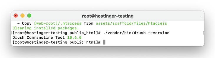 Lo primero que debes hacer es instalar Drush en tu proyecto Drupal. Ejecuta la siguiente línea desde tu directorio raíz para instalar Drush a través de la herramienta de gestión de dependencias Composer.