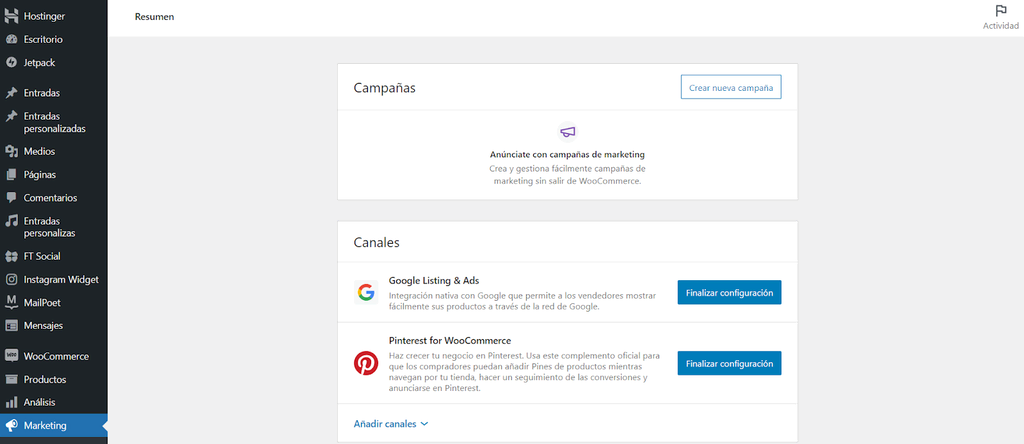 Después de configurar la tienda, todos los ajustes de WooCommerce están disponibles en tu panel de WordPress.