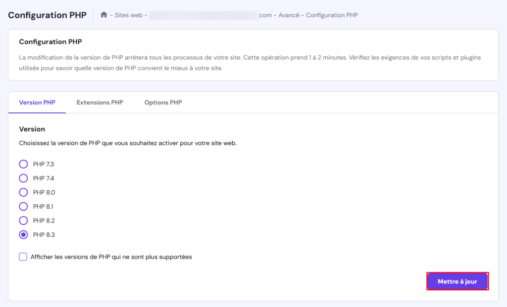 Pour les utilisateurs de Hostinger, voici comment mettre à jour votre version de PHP dans hPanel :