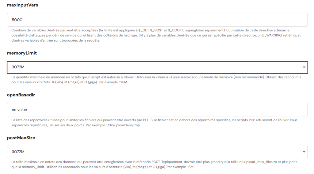 - Augmentez la limite de mémoire PHP si nécessaire.