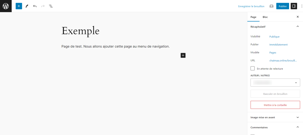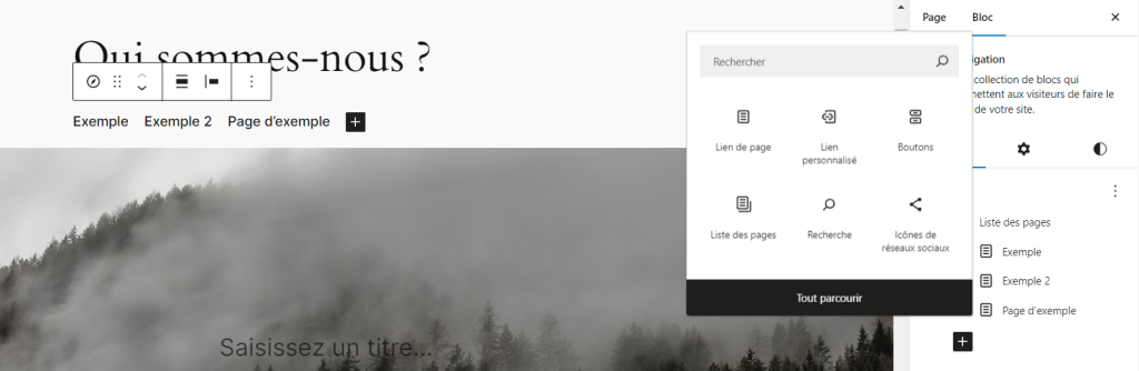 Ajouter une page dans un menu à l’aide de l’éditeur de site