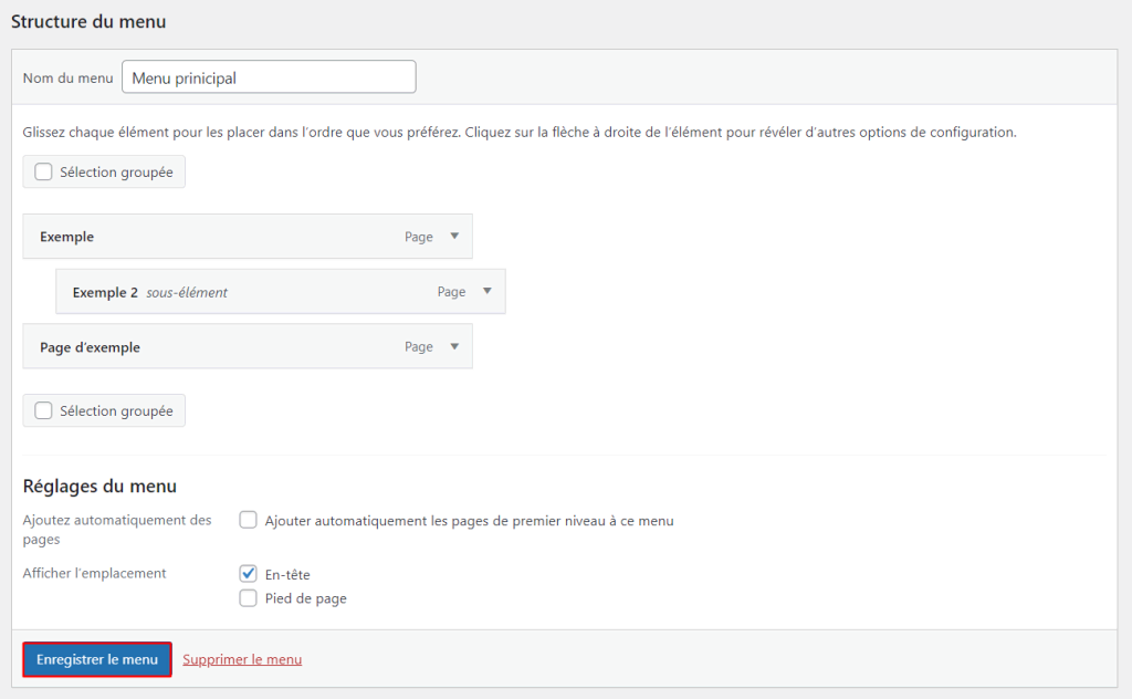Ajouter une page à un menu depuis le tableau de bord de WordPress