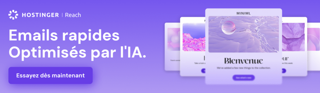 La plateforme d’email marketing Hostinger Reach simplifie l’automatisation des e-mails grâce à l’IA. Elle vous aide à concevoir en quelques minutes des templates d’e-mails adaptés à votre marque, à gérer vos listes et à envoyer des campagnes à l’aide d’invites, ce qui est idéal pour les débutants comme pour les professionnels.