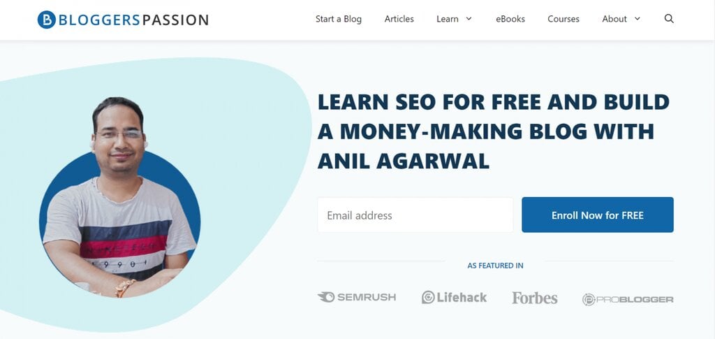 Bloggers Passion est l’un des meilleurs exemples de blogs pour les personnes qui souhaitent créer une activité de blogging. Son créateur est Anil Agarwal, un expert en référencement et blogueur à plein temps. La plupart des informations contenues sur le site, notamment les guides et les conseils pour créer un blog et gagner de l’argent en bloguant, sont basées sur son expérience.
