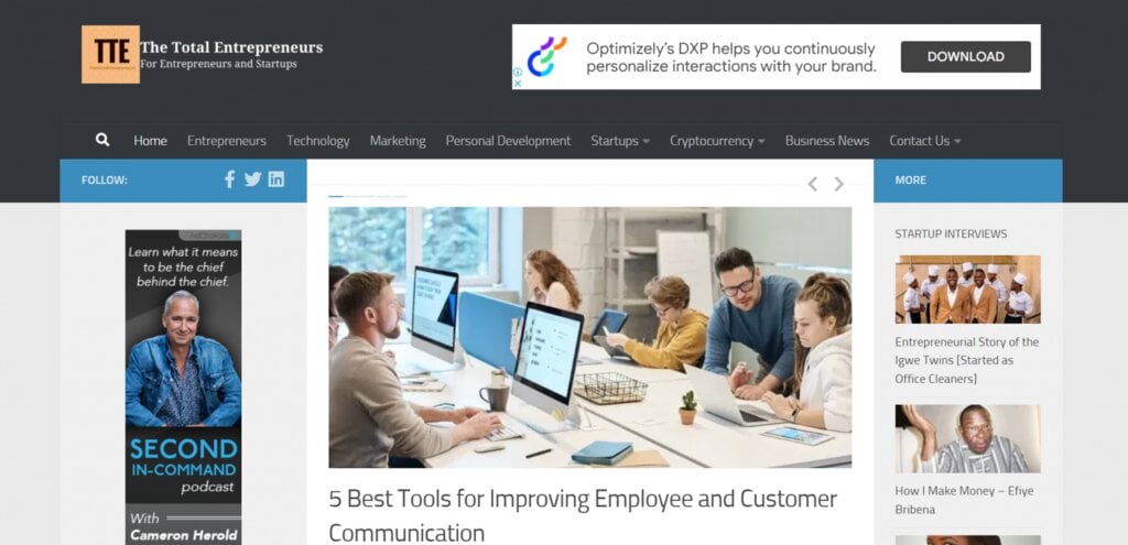 L’un des meilleurs blogs pour les entrepreneurs et les propriétaires de startups, The Total Entrepreneurs couvre divers sujets allant de la création et du développement d’une entreprise à l’impact de votre activité sur la société.