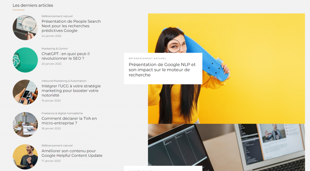 Ce blog fournit plusieurs articles sur le marketing digital, le SEO, l’Inbound Marketing et bien plus encore. Il donne des astuces pratiques sur la vie de freelance, et dispose même d’une catégorie de “Freelance & digital nomadisme” pour aider les entrepreneurs et les freelancers à réussir .