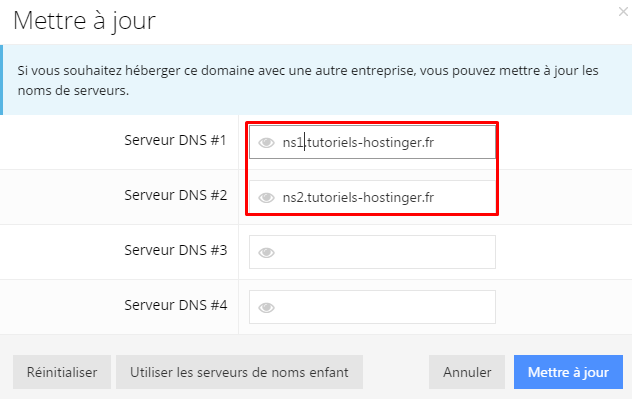 Modifiez maintenant les serveurs de noms dans le panneau de gestion du nom de domaine de votre registraire. Voici comment procéder sur Hostinger :