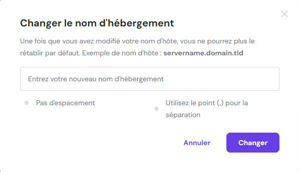 Si vous utilisez le VPS Hostinger, la seule façon de changer le nom d’hôte de façon permanente est de passer par le hPanel. Voici comment procéder :