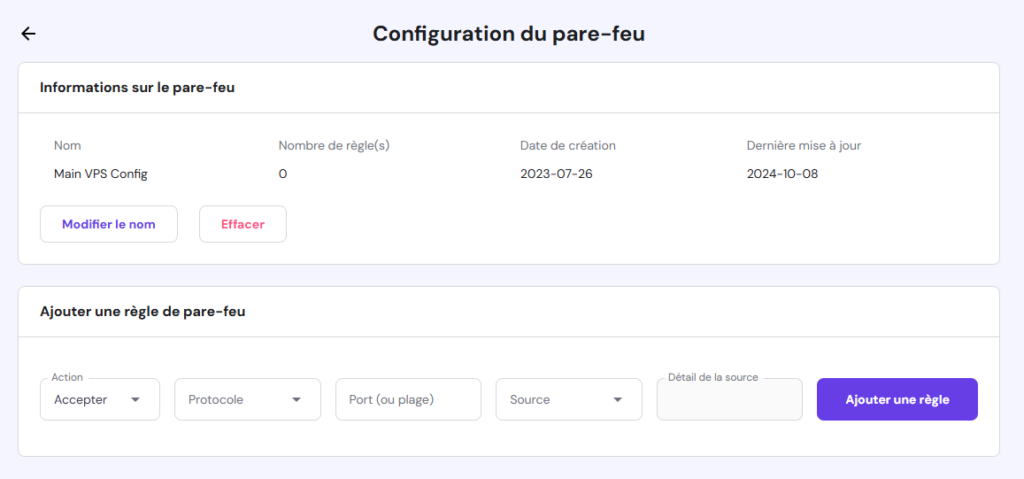 - Ajoutez des règles de pare-feu en remplissant les champs désignés et cliquez sur Ajouter une règle.