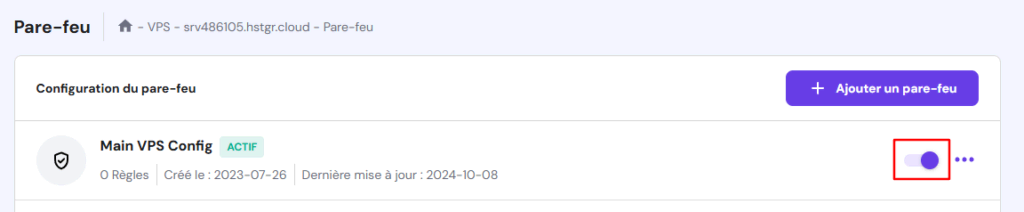 - Une fois terminé, revenez à la page Pare-feu et activez votre configuration en la basculant à droite.