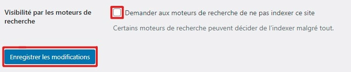 Sur la page Réglages de lecture, faites défiler la page vers le bas et assurez-vous que la case Visibilité par les moteurs de recherche est décochée. Cliquez sur Enregistrer les modifications et vous avez terminé.