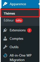 Dans le menu gauche, allez à Apparence -> Thèmes.