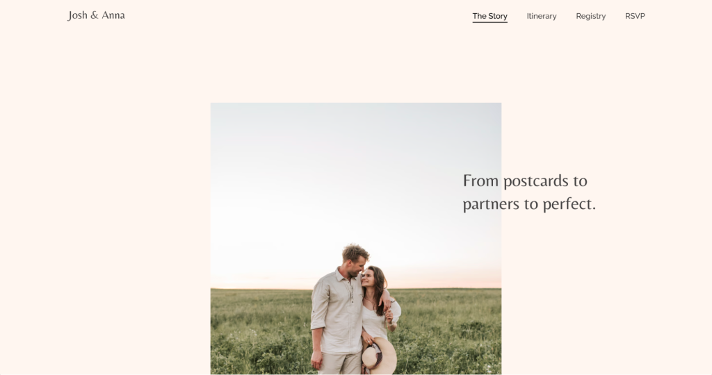 Ajoutez une touche personnelle à votre site web de mariage avec une page « À propos de nous » qui partage votre histoire d’amour.