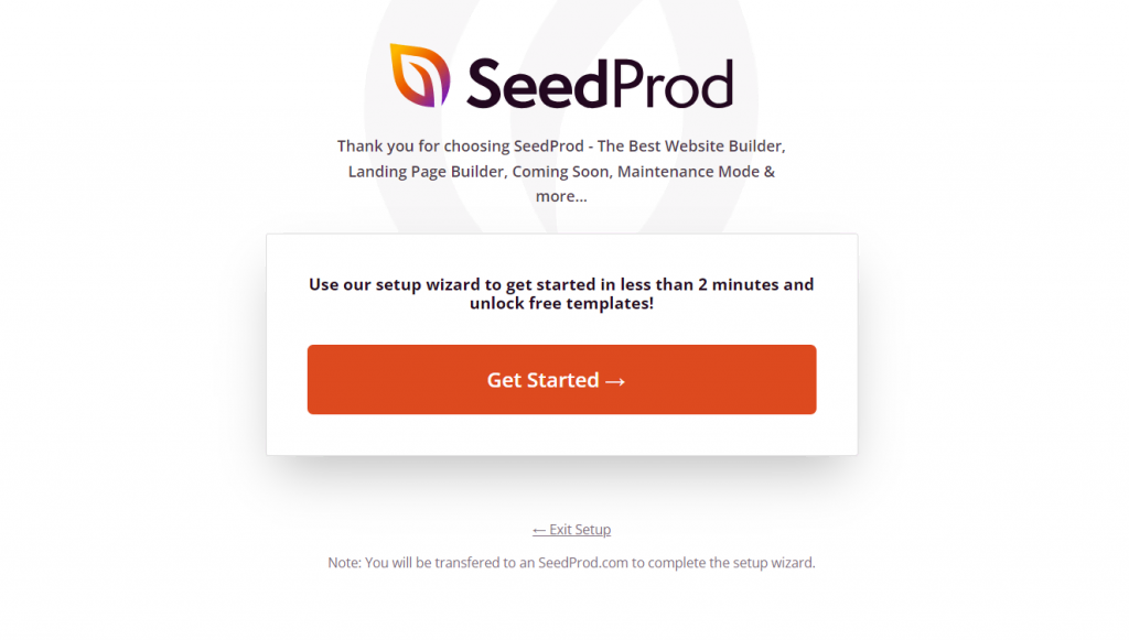 - Allez dans SeedProd → Configuration et cliquez sur Setup a Maintenance Page.