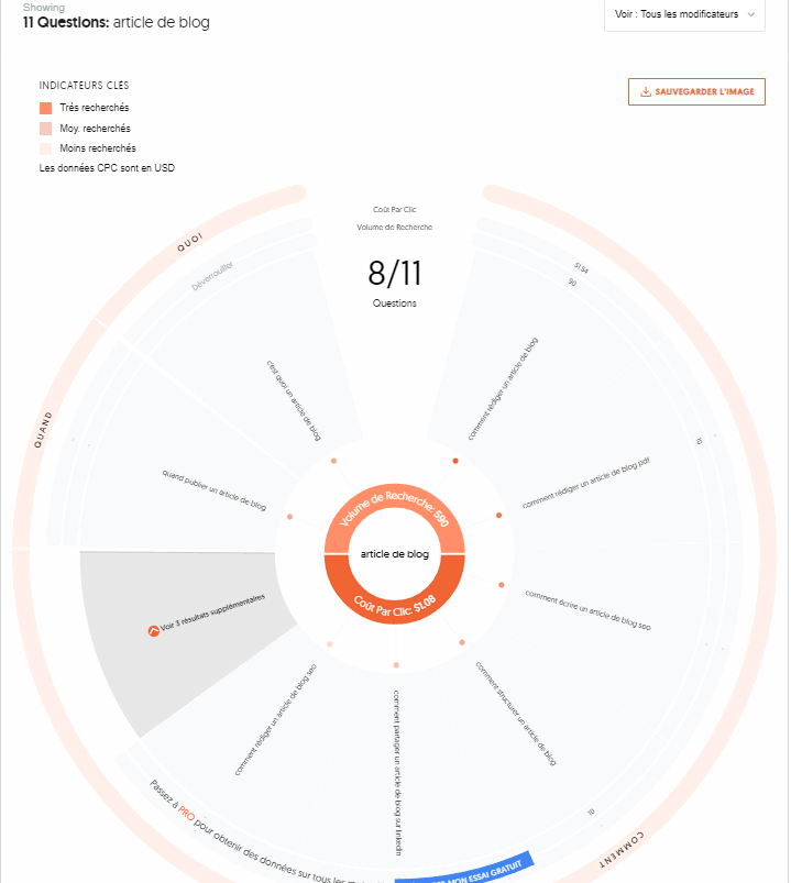 Par exemple, voici le résultat de la recherche pour le terme “article de blog”.