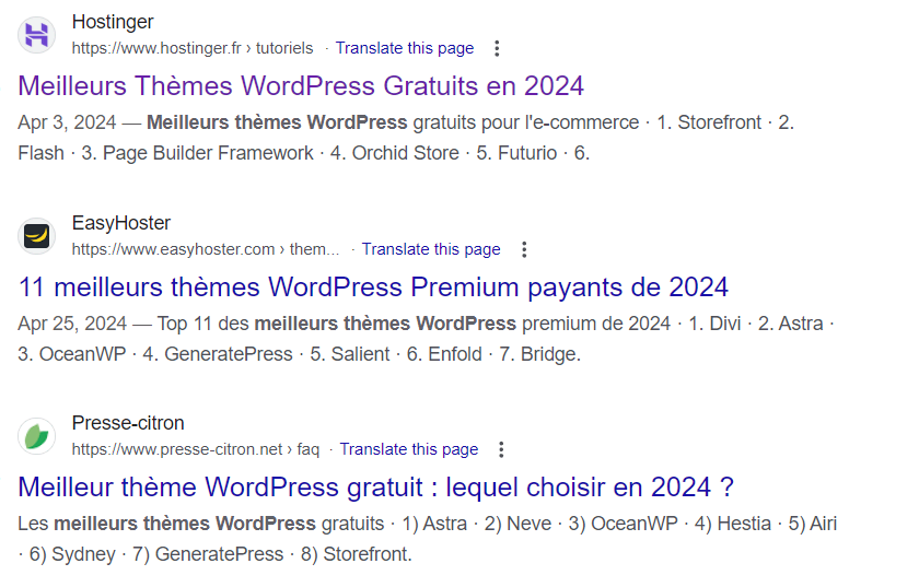 - Support intégré des balises de schéma. Créez des snippets riches attrayants qui apparaissent dans les résultats de recherche de Google.