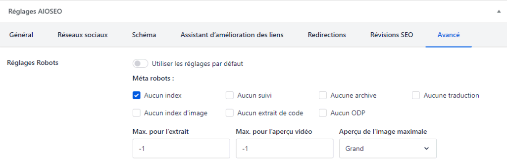 Important ! Ne cochez pas cette case si elle n’est pas cochée. Vous risquez de perdre votre classement dans les moteurs de recherche, même si elle n’est cochée que temporairement.