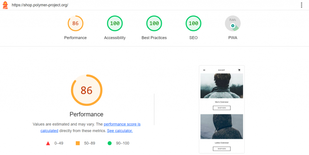 Notez que le score d’une page n’influence pas les performances des autres pages pour chaque critère. Par exemple, une page d’accueil peut avoir un score inférieur à celui d’une page de produit.