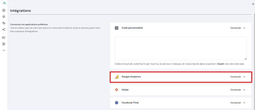 Allez sur la page Intégrations et trouvez Google Analytics.
