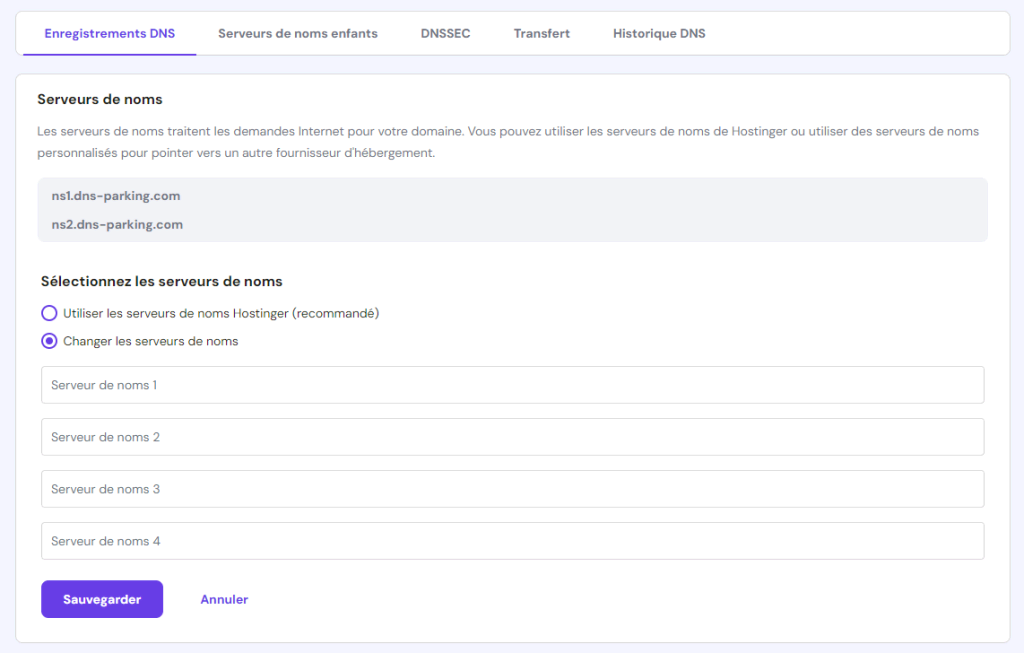 - Dans la section Serveurs de noms, cliquez sur Changer les serveurs de noms.