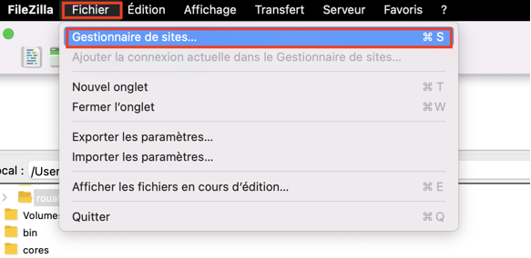- Cliquez sur Fichier et ouvrez le Gestionnaire de sites .