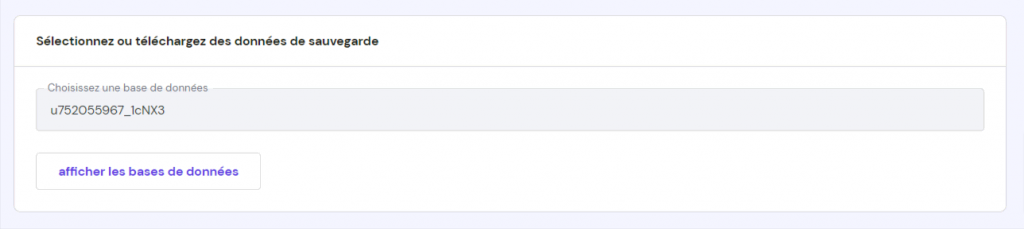 4. Ensuite, restaurez votre Base de données. Sélectionnez l’option Sauvegarde de Base de données, choisissez la base de données à restaurer, puis cliquez sur Afficher les bases de données.