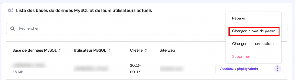 - Si vous ne connaissez pas le mot de passe, créez-en un nouveau en cliquant sur l’icône à trois points à côté de l’utilisateur et en sélectionnant Changer le mot de passe.