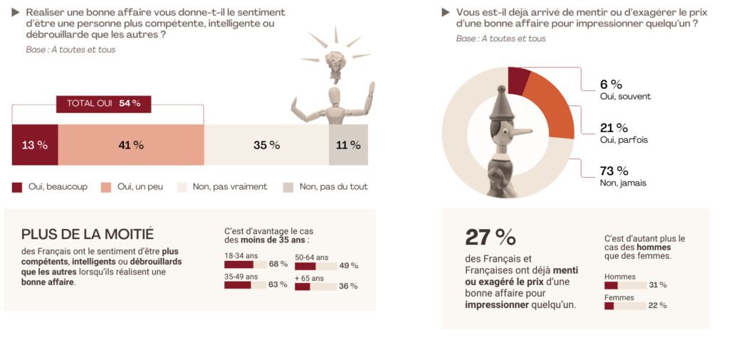 Bien au-delà d’un simple acte de consommation, la capacité à dénicher une bonne affaire apparaît comme un facteur non négligeable de valorisation personnelle. Plus de la moitié des répondants (54%) affirment en effet que la conclusion d’un achat avantageux leur procure un sentiment de compétence, d’intelligence ou de débrouillardise.