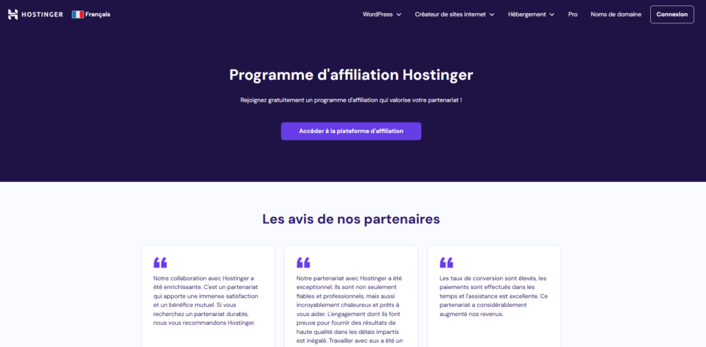 Que l’on se concentre sur la recherche organique ou sur le trafic payant, il est essentiel d’avoir un fournisseur d’hébergement web fiable pour garantir des performances optimales pendant la croissance de votre site. Hostinger propose des services d’hébergement web, VPS et d’hébergement cloud, permettant une expansion fluide à mesure que votre trafic augmente.