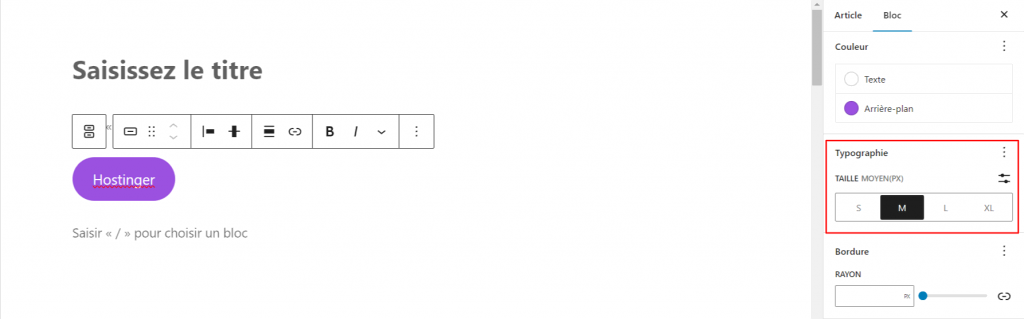 3. Vous pouvez personnaliser son apparence à l’aide de la barre d’outils du bloc.