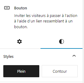 4. Dans les paramètres de bloc, vous pouvez styliser le bouton en utilisant Plein ou Contour.