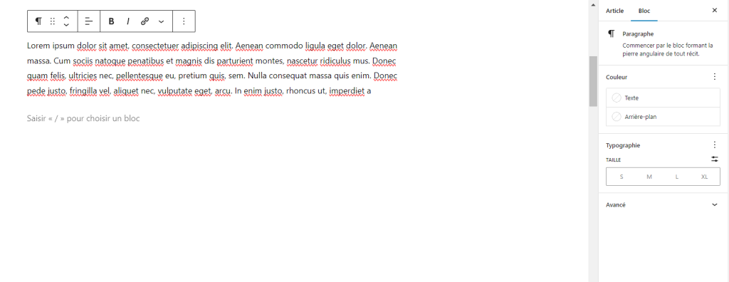 | / | Change le type de bloc après l’ajout d’un paragraphe. |