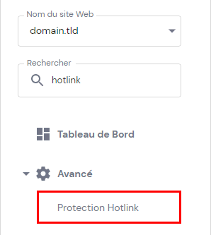 - Sous Avancé, sélectionnez Protection Hotlink.