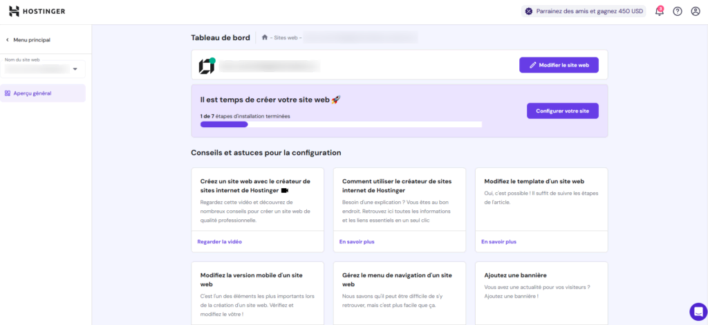 hPanel est également votre tableau de bord pour gérer tout ce qui concerne votre compte Hostinger. De la gestion des factures et la réinitialisation de votre mot de passe au suivi des parrainages et à l’accès aux tutoriels, hPanel est conçu pour vous permettre de réussir en ligne.